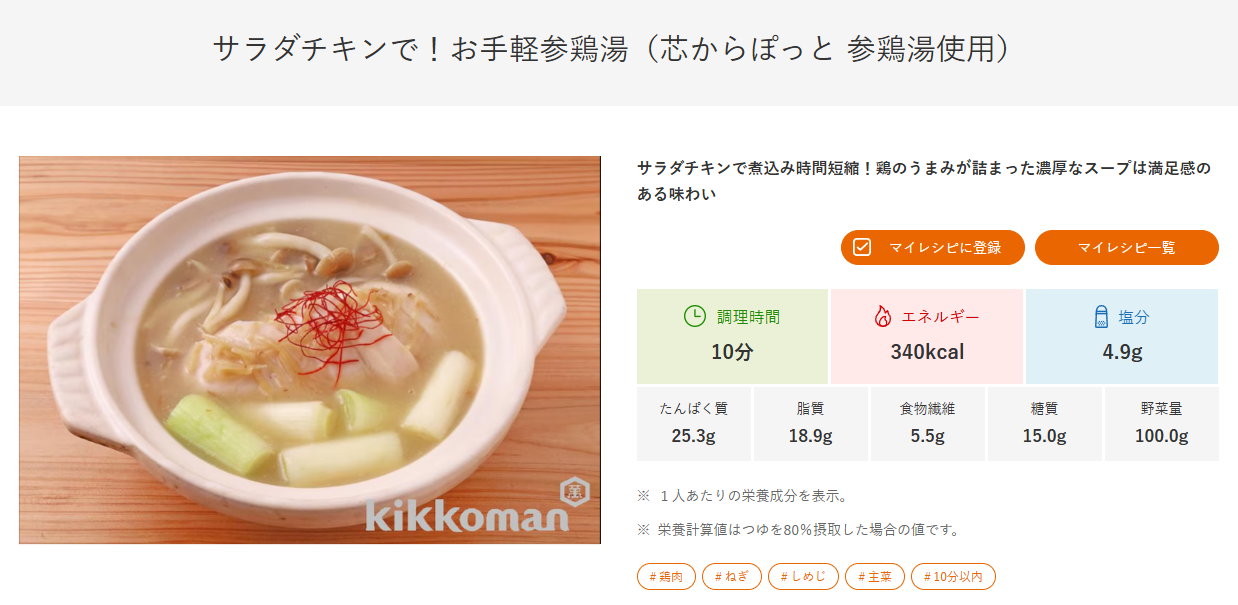 サラダチキンで!お手軽参鶏湯(芯からぽっと 参鶏湯使用)